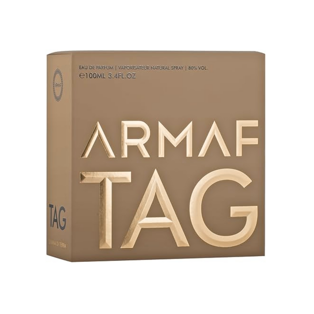Experience the elegance of Armaf Tag Her Donna Di Terra Beige Eau De Parfum 100 ML. A refined fragrance blending citrus, pink pepper, rose, and patchouli for a soft yet sophisticated scent.