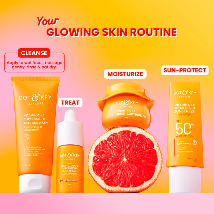 Glowing skin, now with every wash! Suitable for daily use, this sulphate-free glow-boosting facewash with Triple Vitamin C, Sicilian Blood Orange, Vitamin E & Papaya Enzyme visibly reduces dullness, pigmentation & dark spots. It also unclogs pores of dirt & excess oil, leaving skin clean & fresh without overdrying it. Suitable for all skin types.