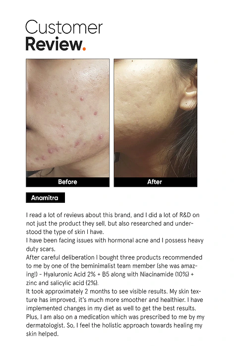 A hydrating booster with 4 different types of Hyaluronic Acid Molecules along with super hydrator Polyglutamic Acid (PGA). Provides multi-level hydration throughout the day.