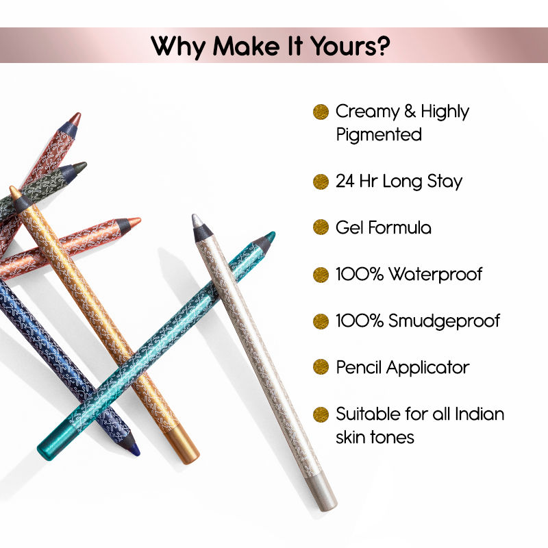 The Kay Beauty Gel Eye Pencil range combines the finish of gel with the precision of a pencil for effortless lining. These 100% waterproof pencils glide on ultra creamy and deliver intense 24 Hr long stay colour that won?t smudge or budge unless wiped out with a makeup remover. Highly pigmented, the range offers 7 rich jewel shades that are specially curated to suit all Indian skin tones and give you statement eyes in one stroke. It?s time to let your eyes do all the talking!