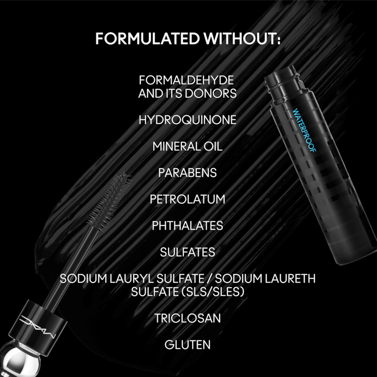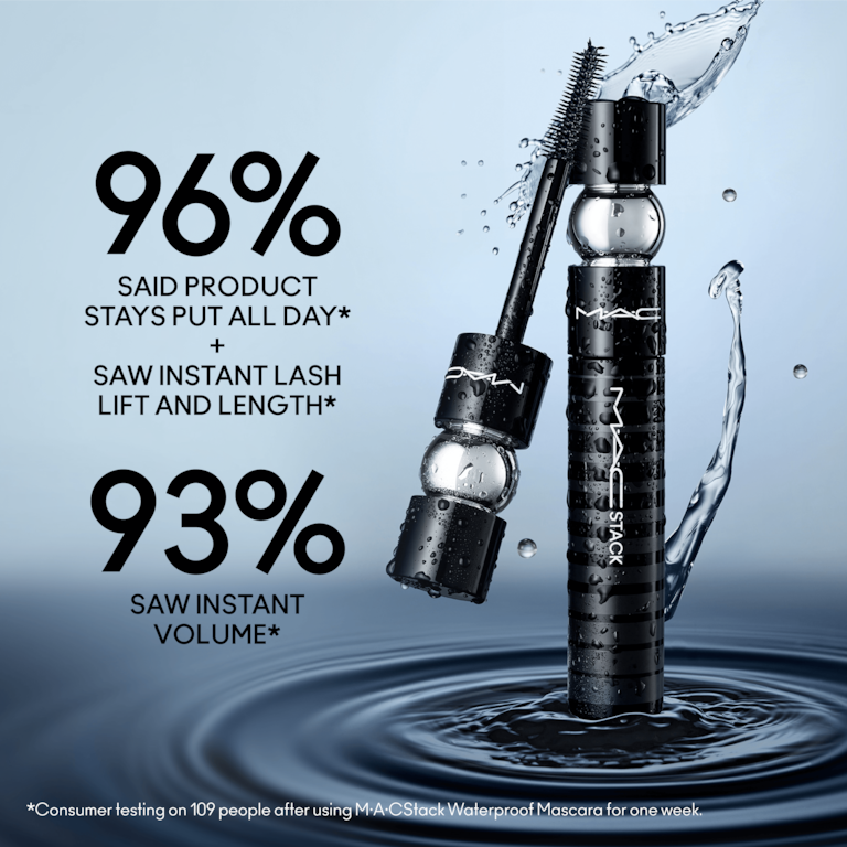 Our award-winning mascara is waterproof + smudge-proof for 24 hours! Continuously buildable, clump-resistant M?A?CStack Waterproof Mascara gives you customizable gravity-defying volume, along with instant lash lift and length in a pool-proof and tear-proof formula. Our Drench-Defense Technology helps to wrap this waterproof mascara around your fringe to protect each individual lash by repelling water.