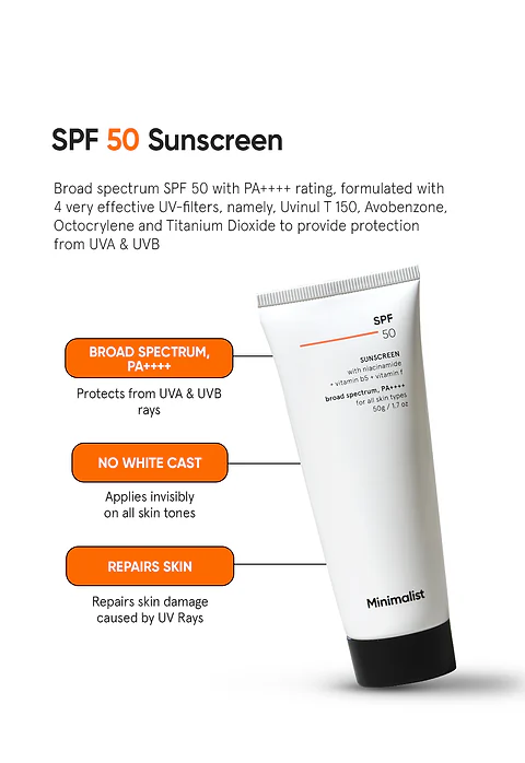 A light weight, moisturiser-meets-sunscreen. This broad spectrum SPF 50 with PA++++ rating, has a very light texture that spreads easily & disappears leaving behind a natural, moisturised, non-shiny look. Loaded with Vitamins A, B, E & F that help repair skin and minimise damage caused by UV exposure.